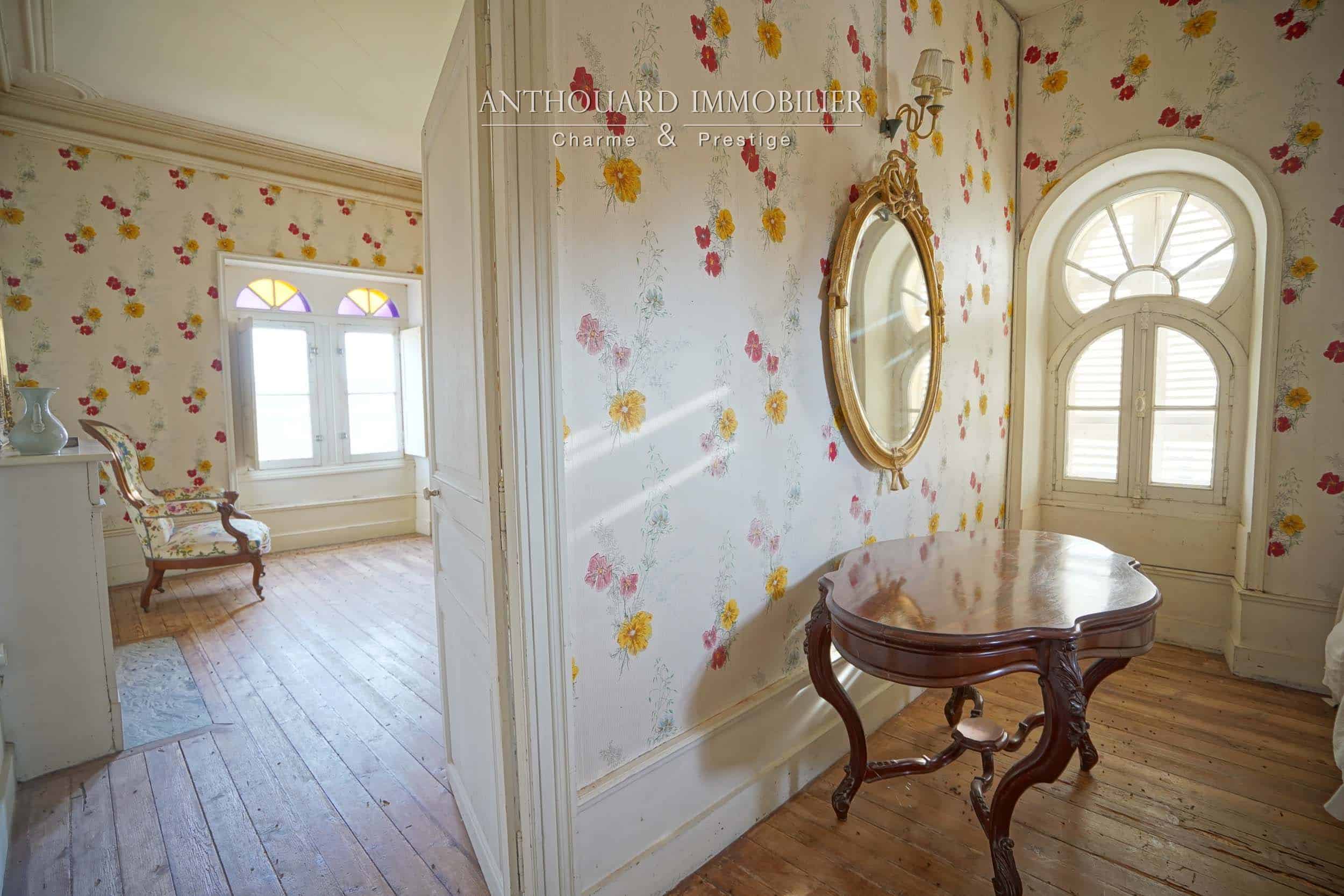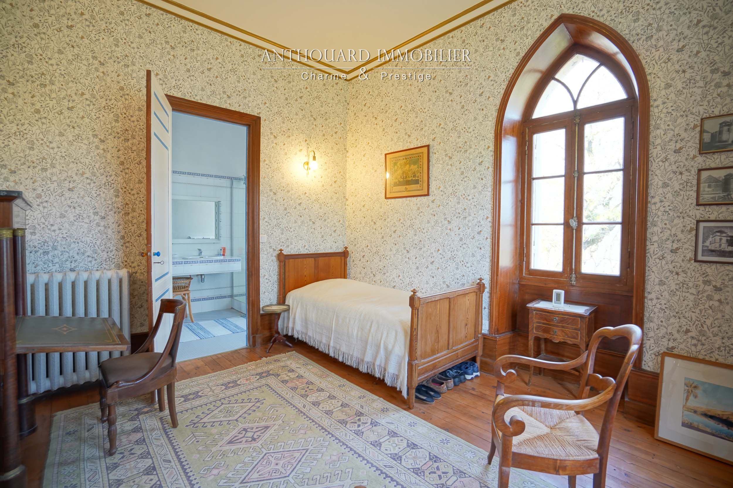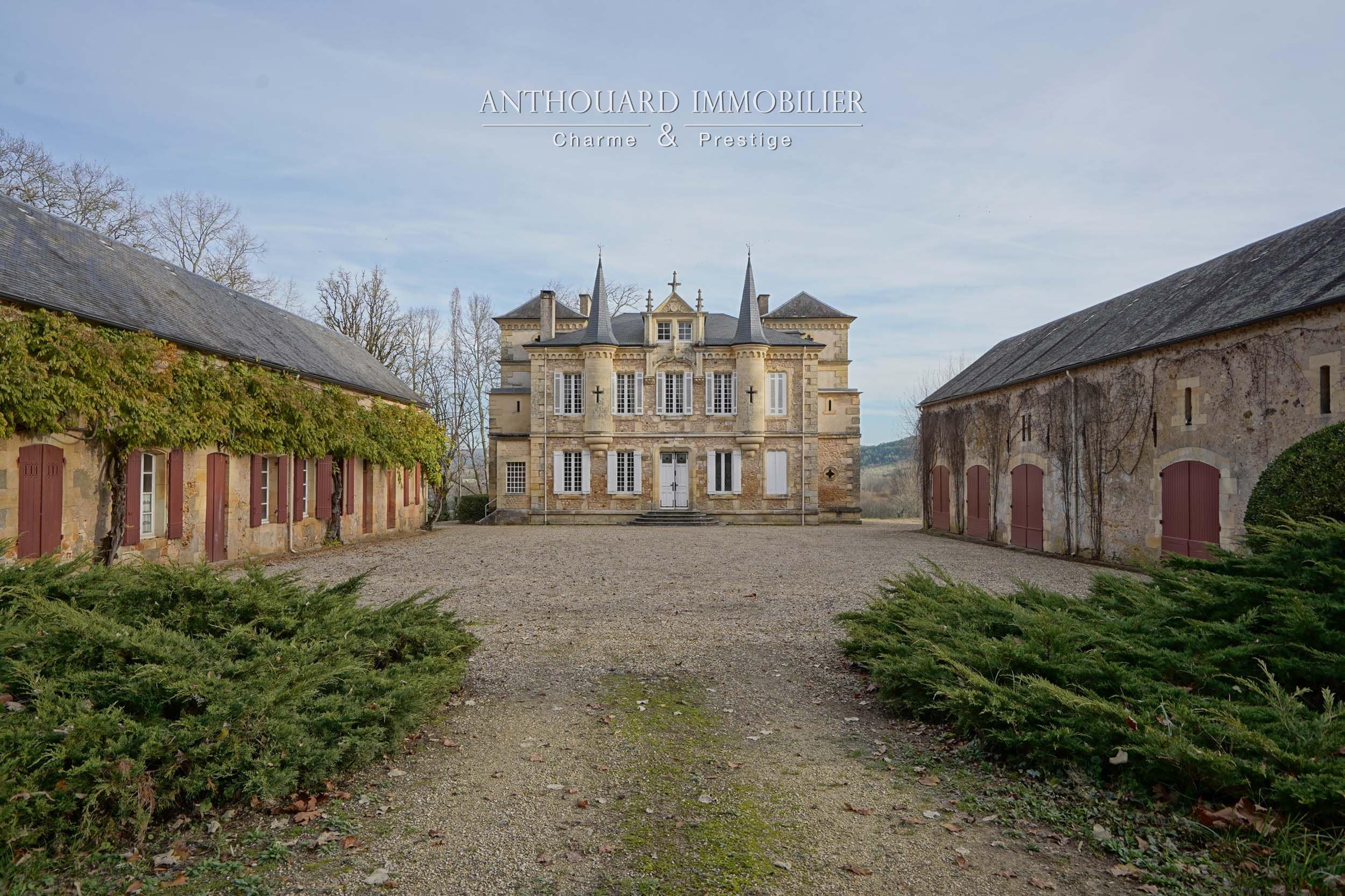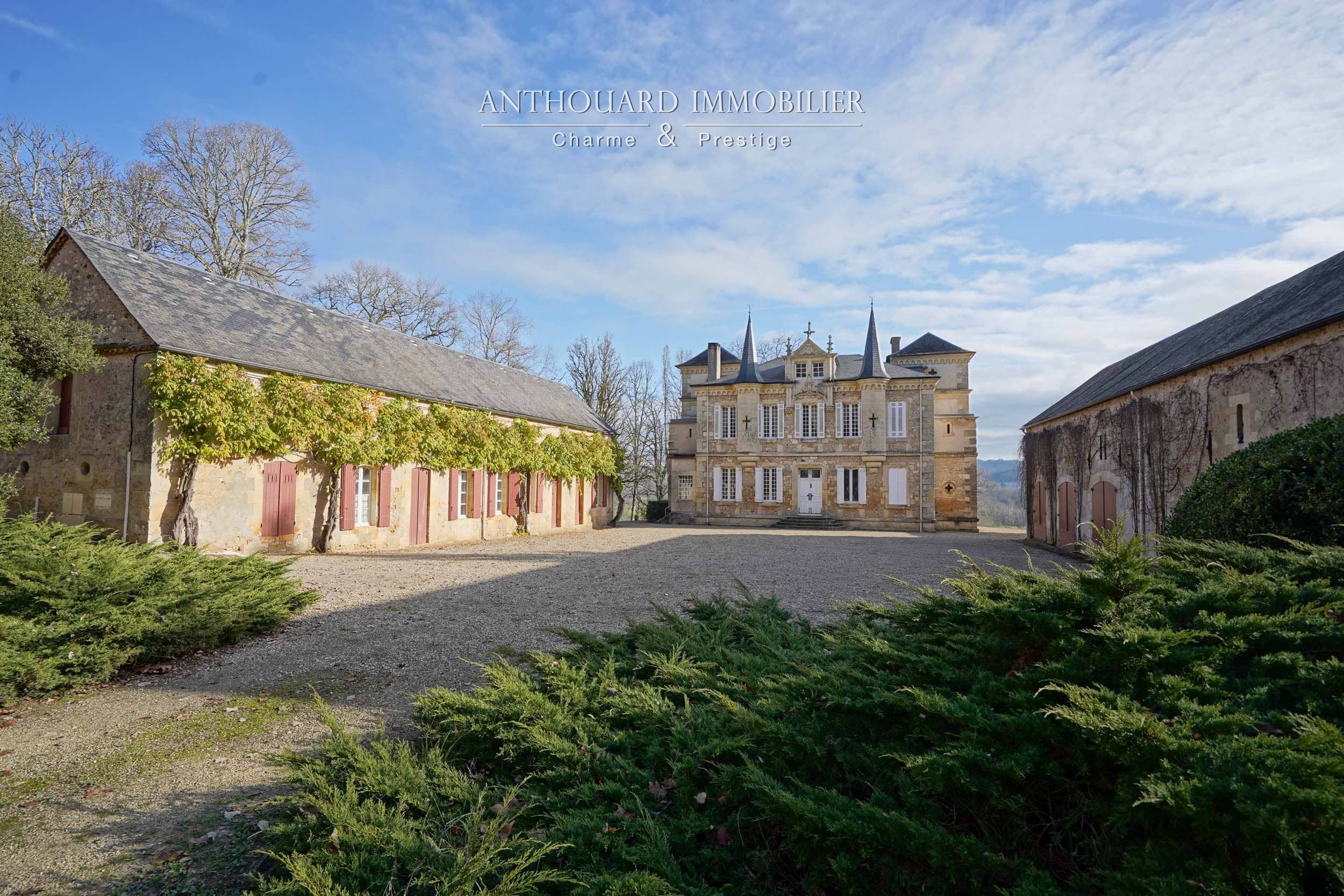 Au bout d’une allée privée de charmes. Portail en fer forgé.