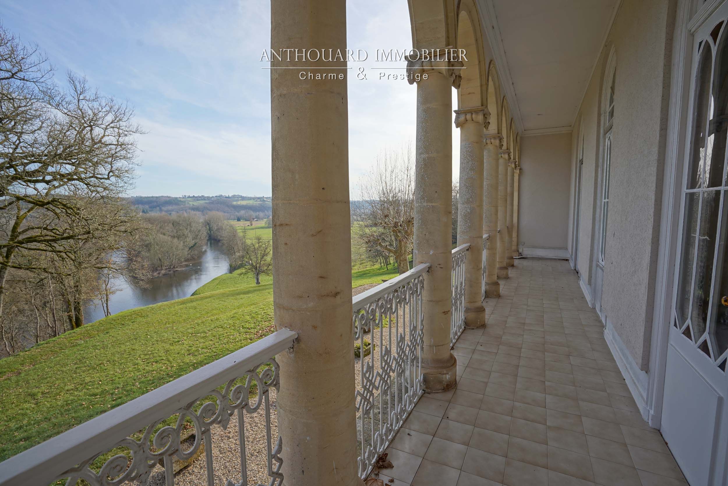 Piscine de 15X6 à rénover, exposée Sud, vue sur la rivière. Orangerie.