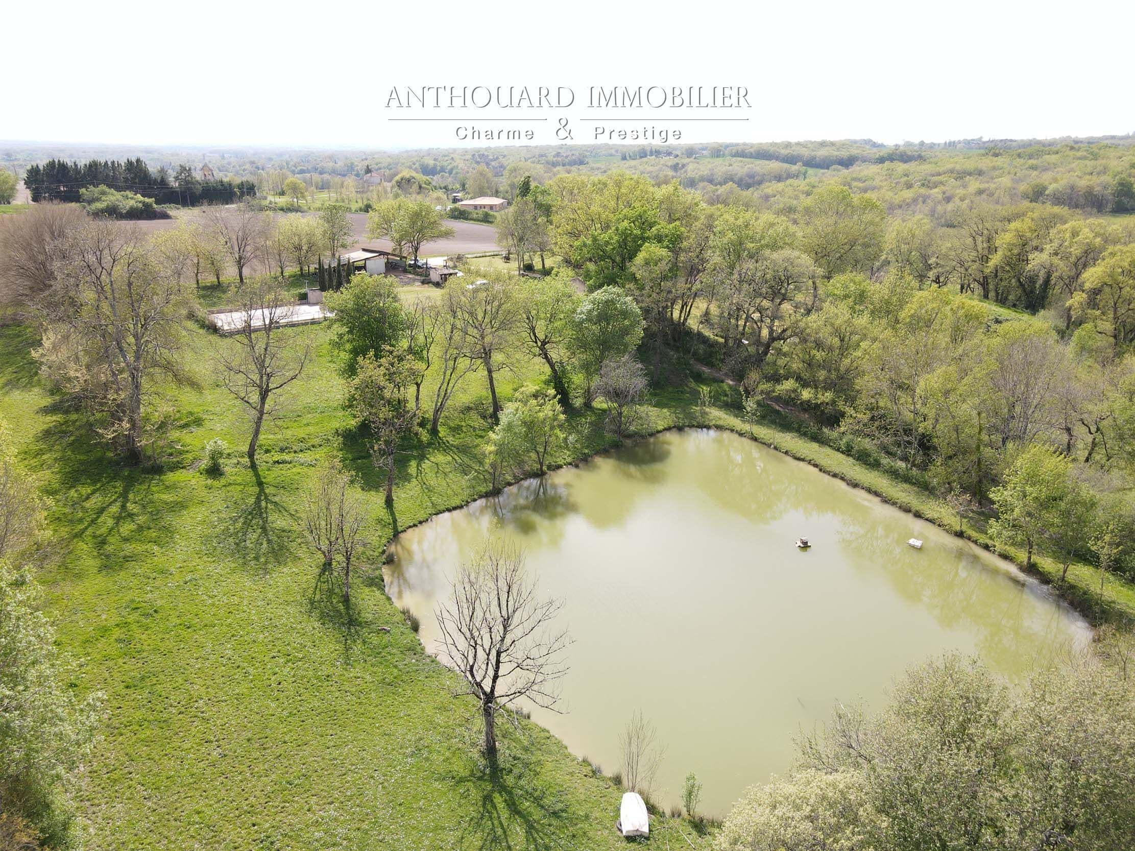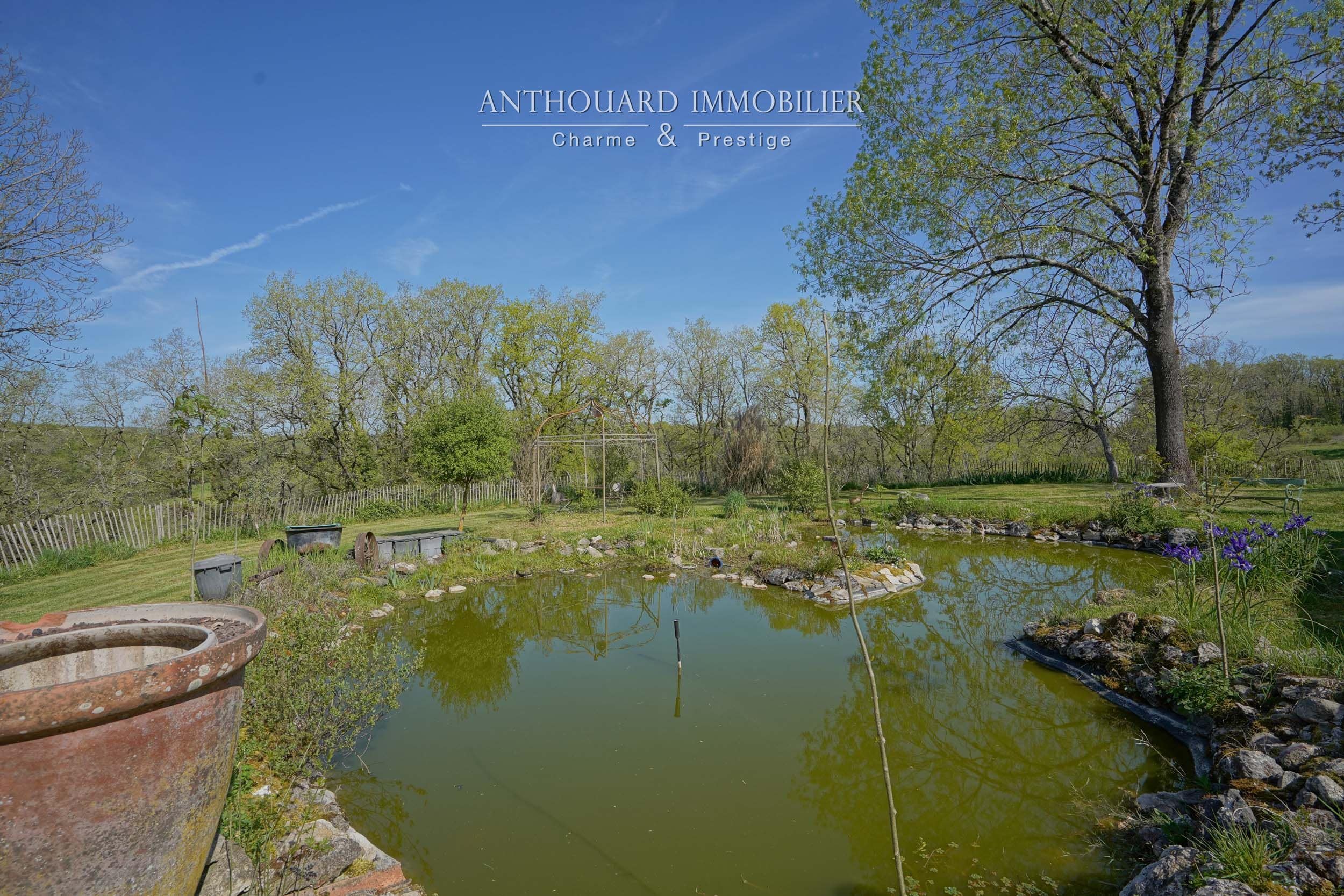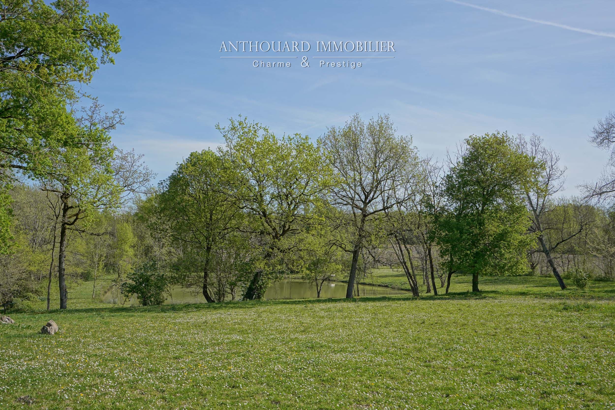 Sur 4ha, bois et prairies, beaux arbres, bel étang. Pièce d’eau alimentée par l’eau pluviale et puits. Nombreuses promenades. Idéal chevaux.