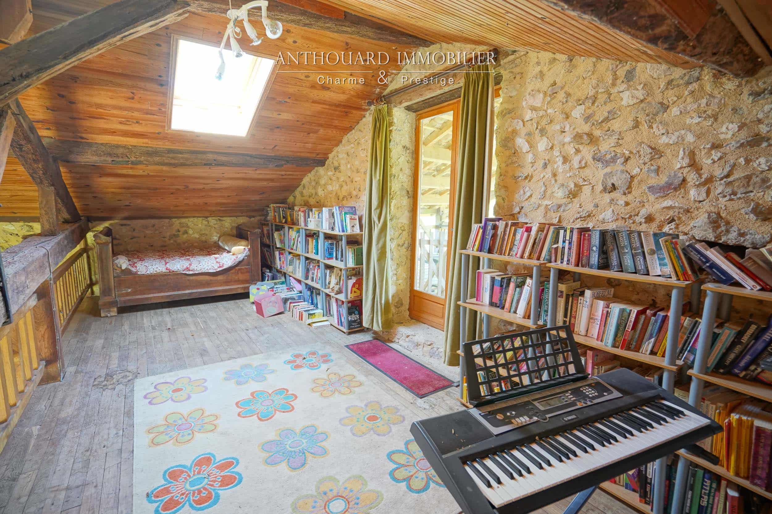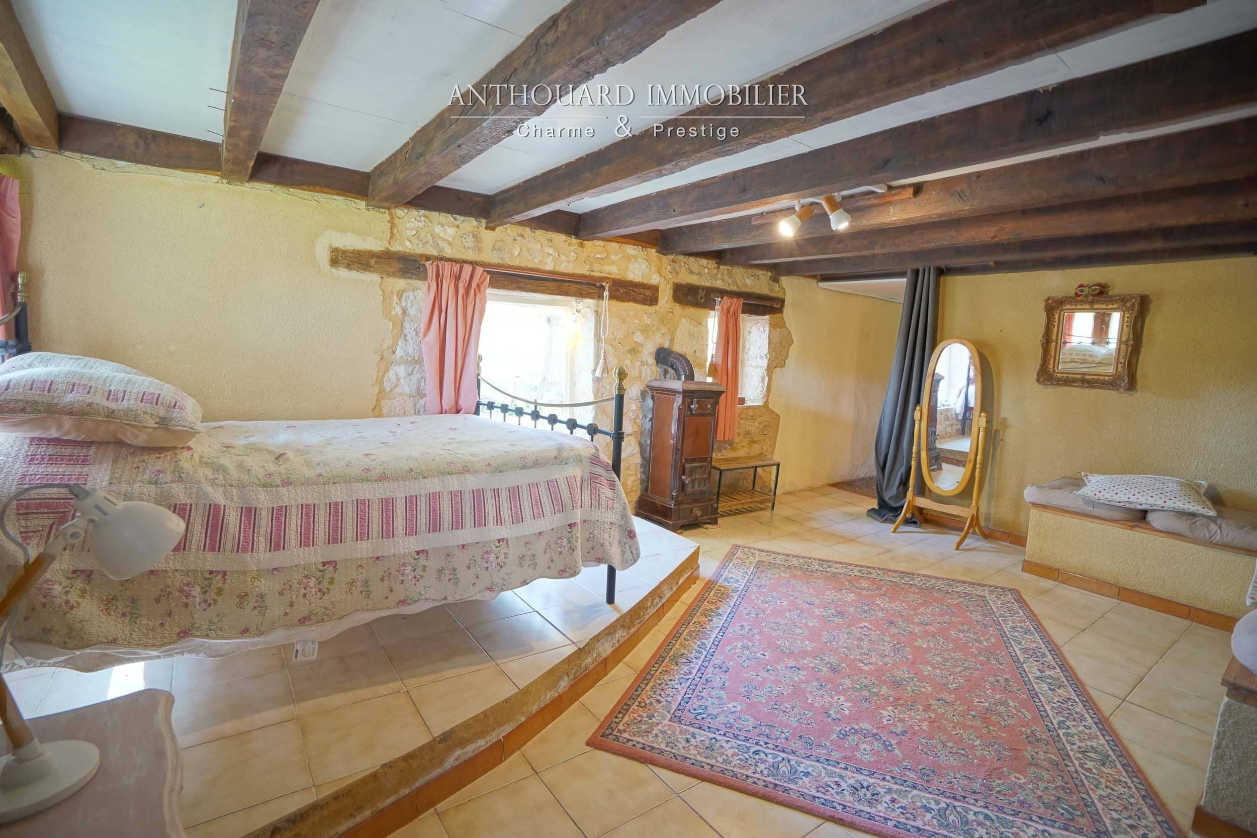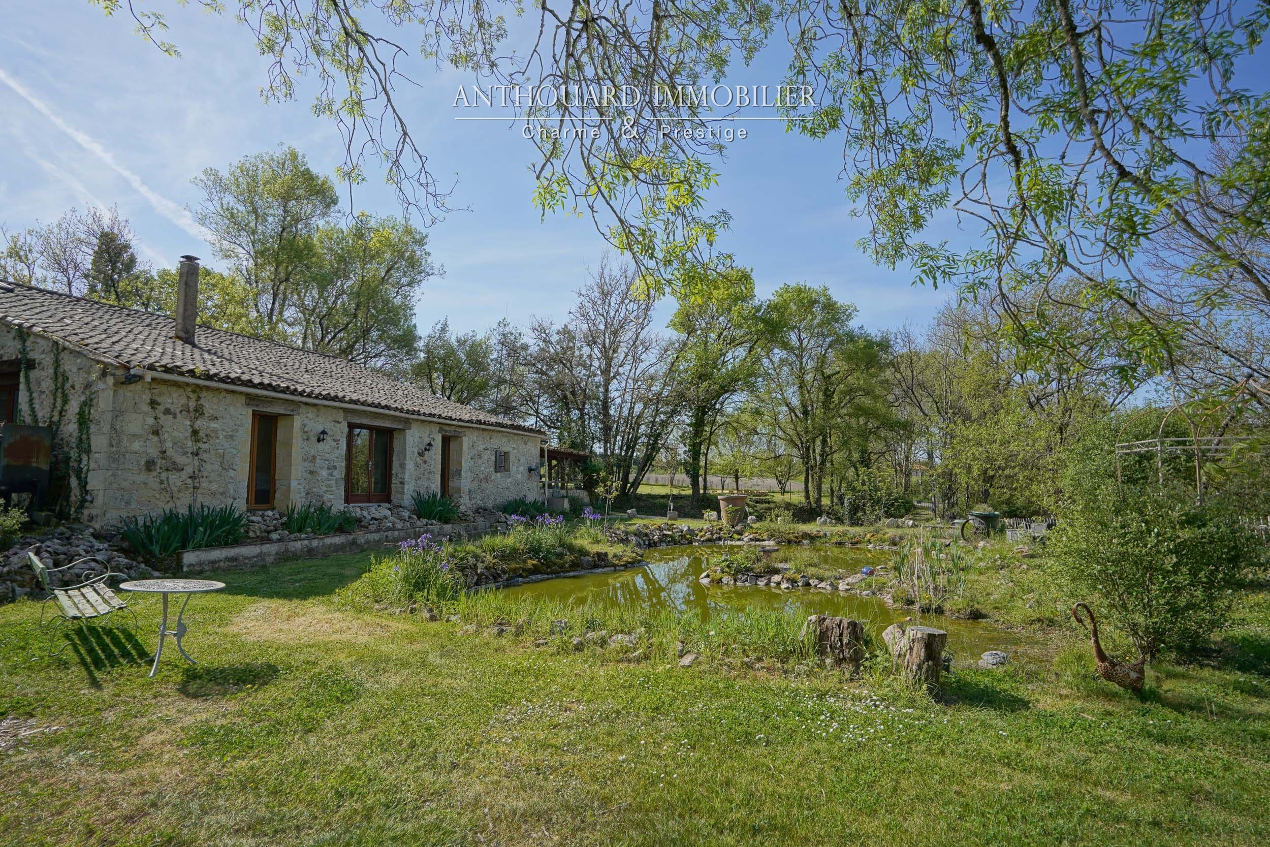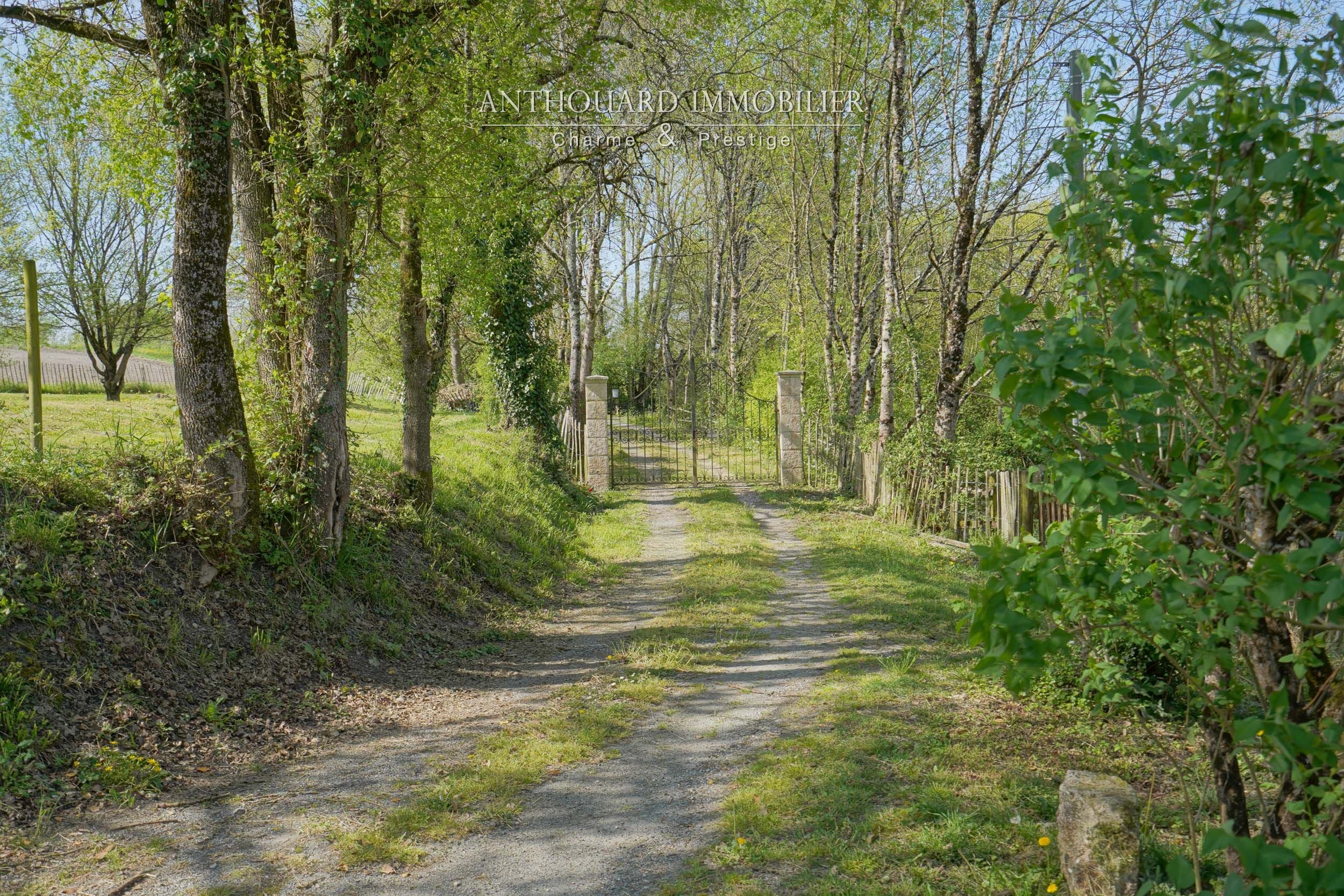 Sur 4ha, bois et prairies, beaux arbres, bel étang. Pièce d’eau alimentée par l’eau pluviale et puits. Nombreuses promenades. Idéal chevaux.