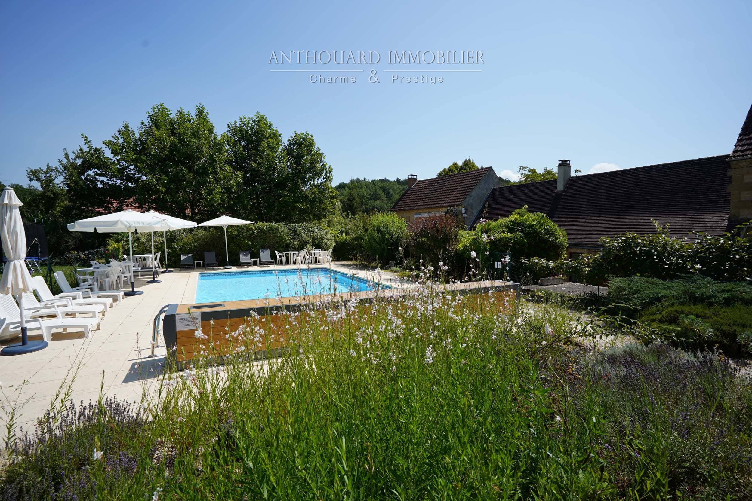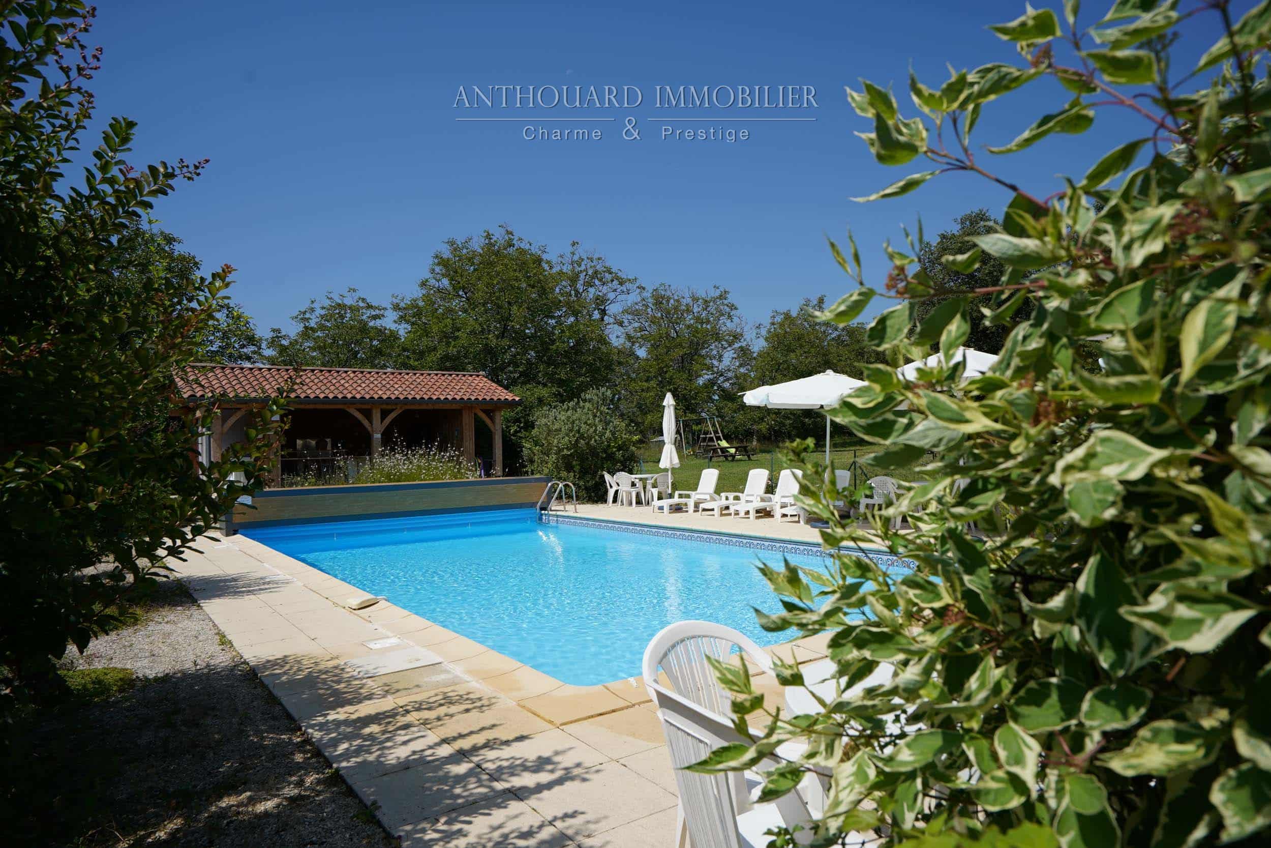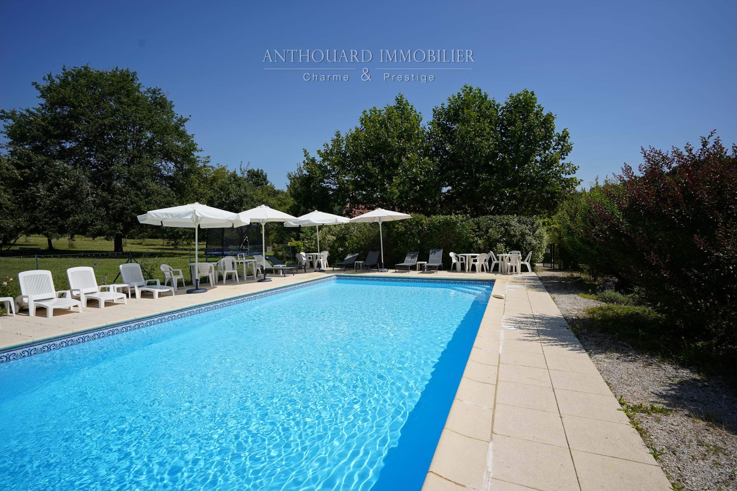 Piscine 12×6 au sel, chauffée pompe à chaleur, liner neuf, alarme, vol électrique. Poolhouse aménagé, WC. Barbecue, four à pizza.
