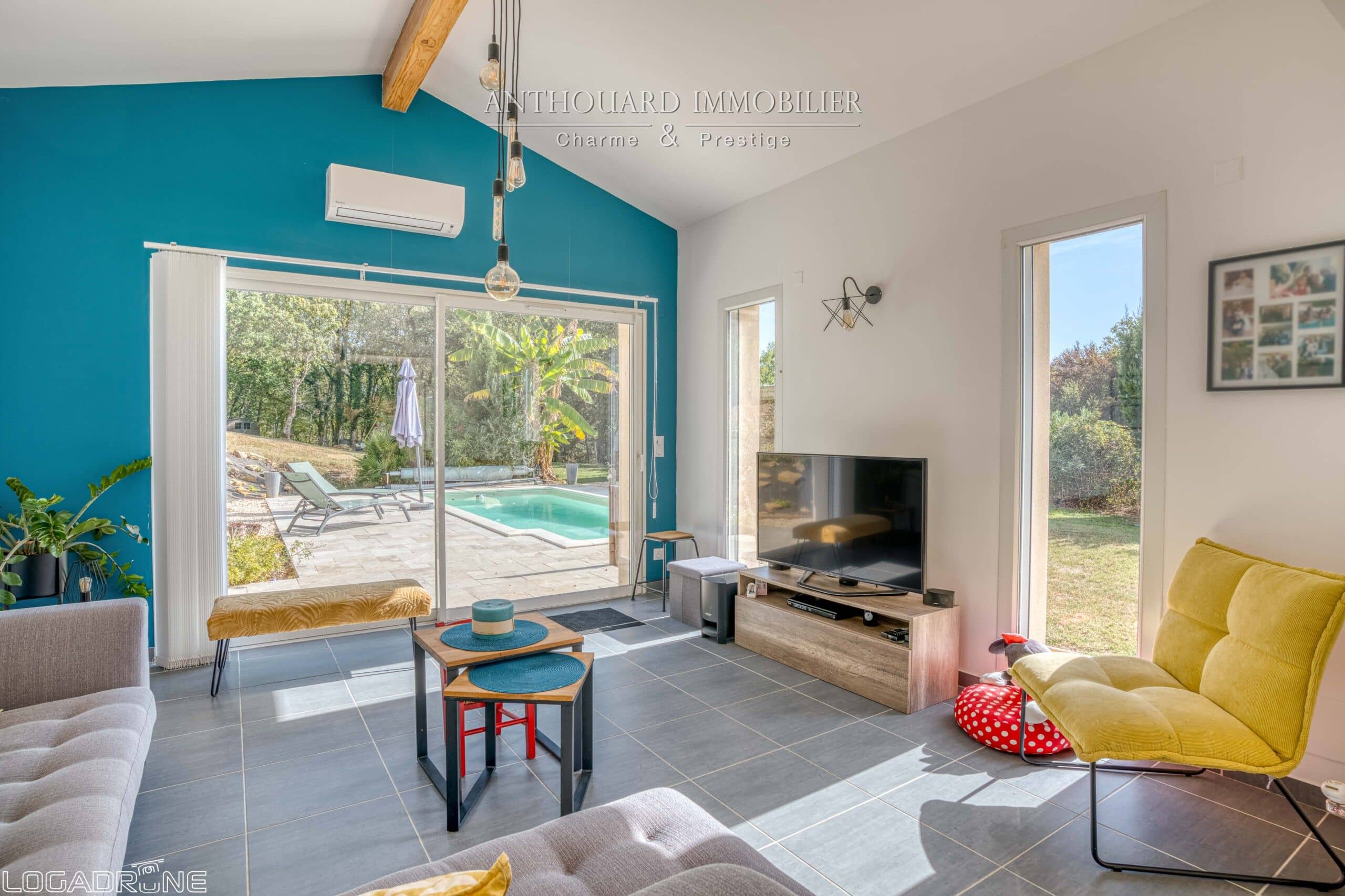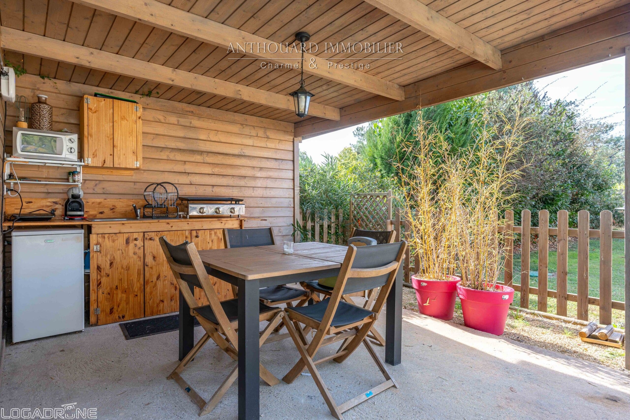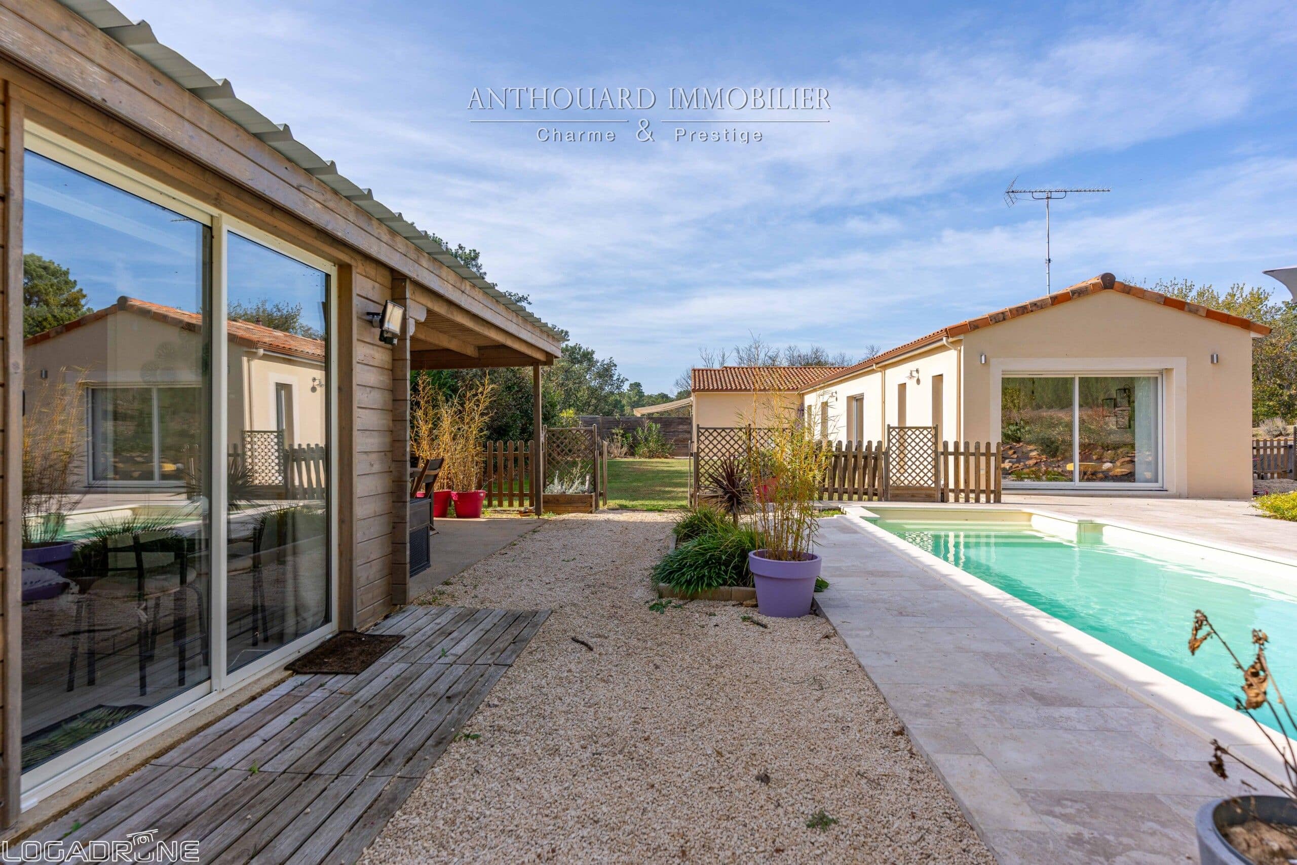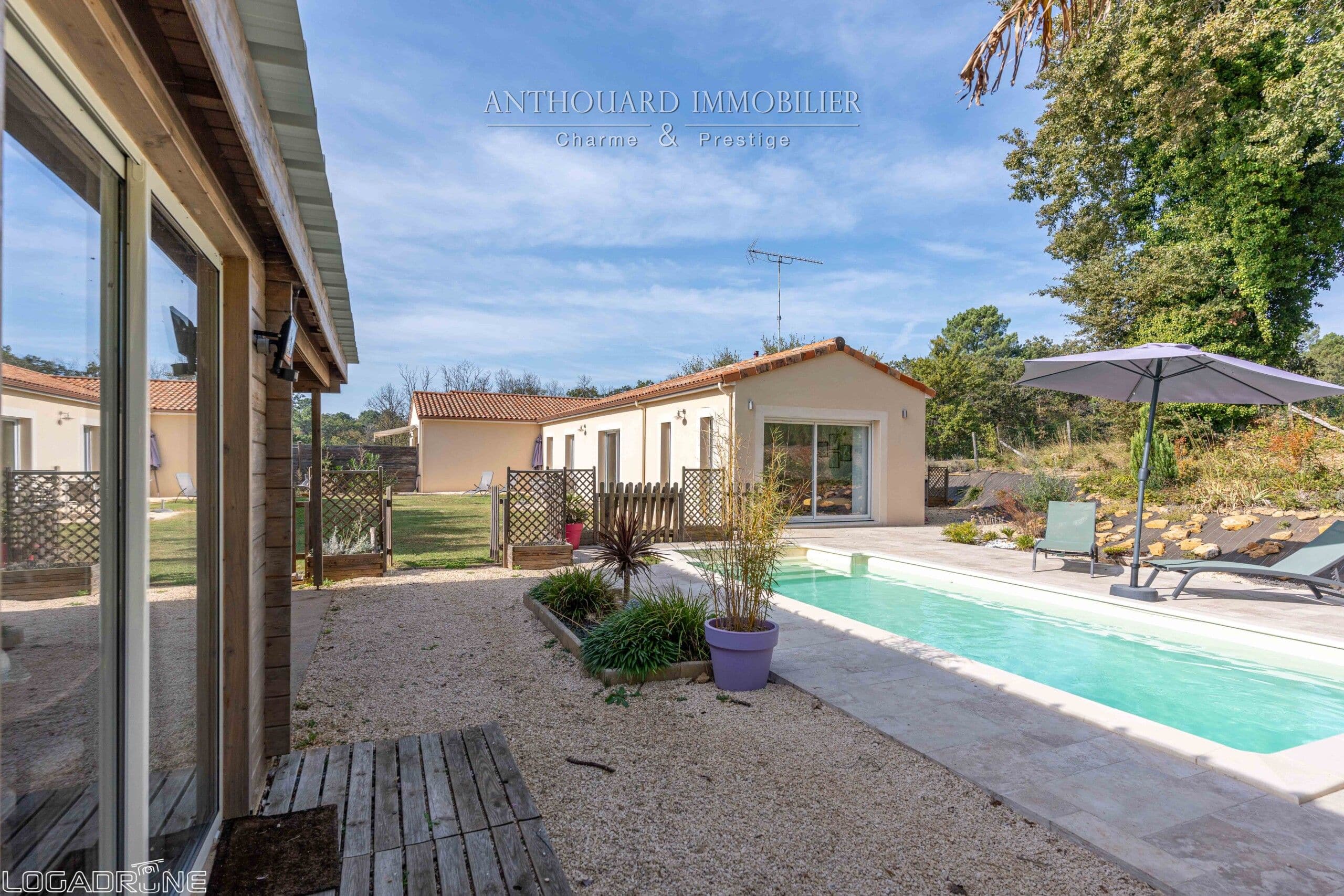 Autour de la piscine se trouve un pool house avec terrasse couverte. Une chambre d’hôtes indépendante avec salle d’eau, wc et espace jacuzzi.