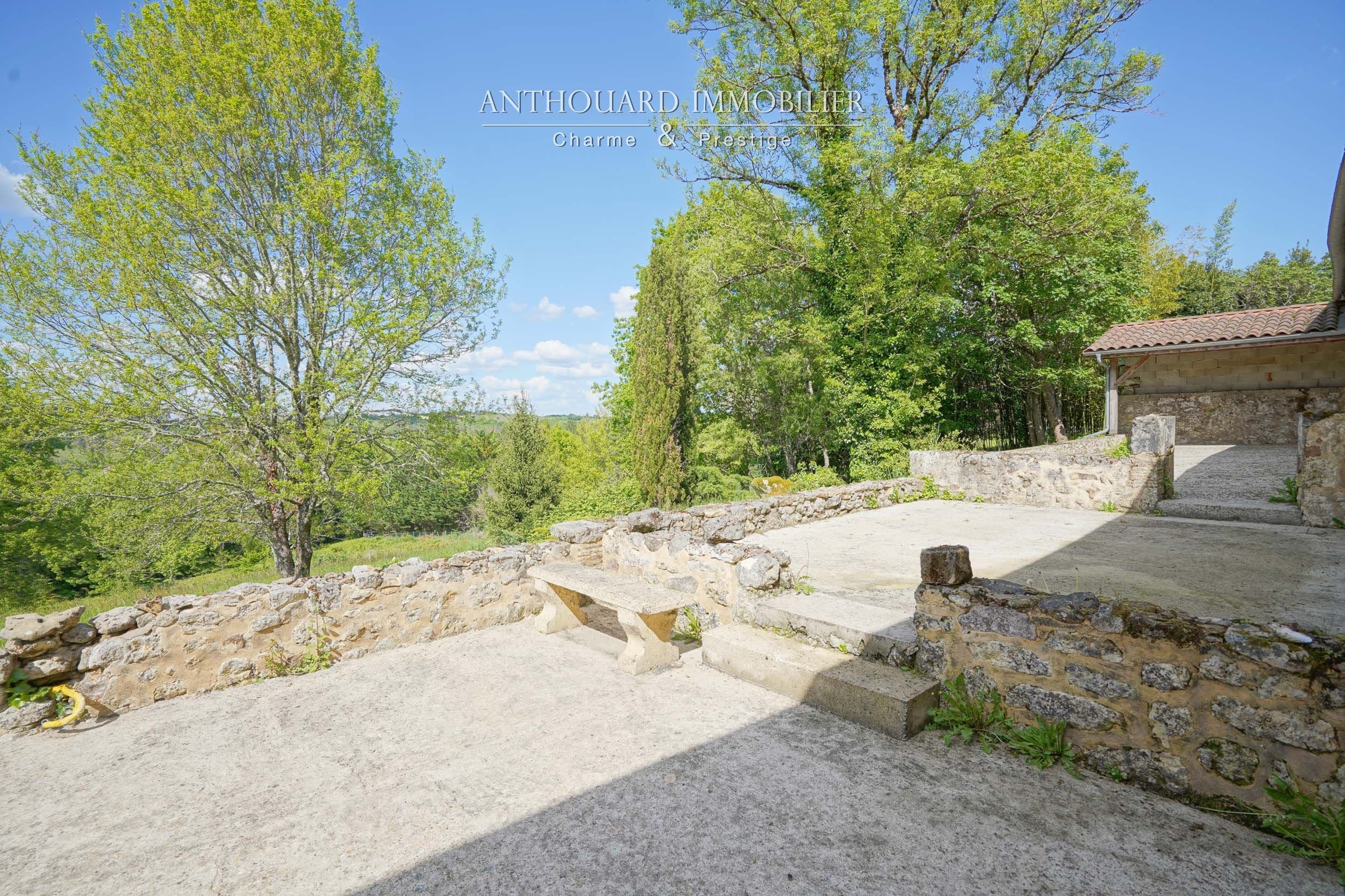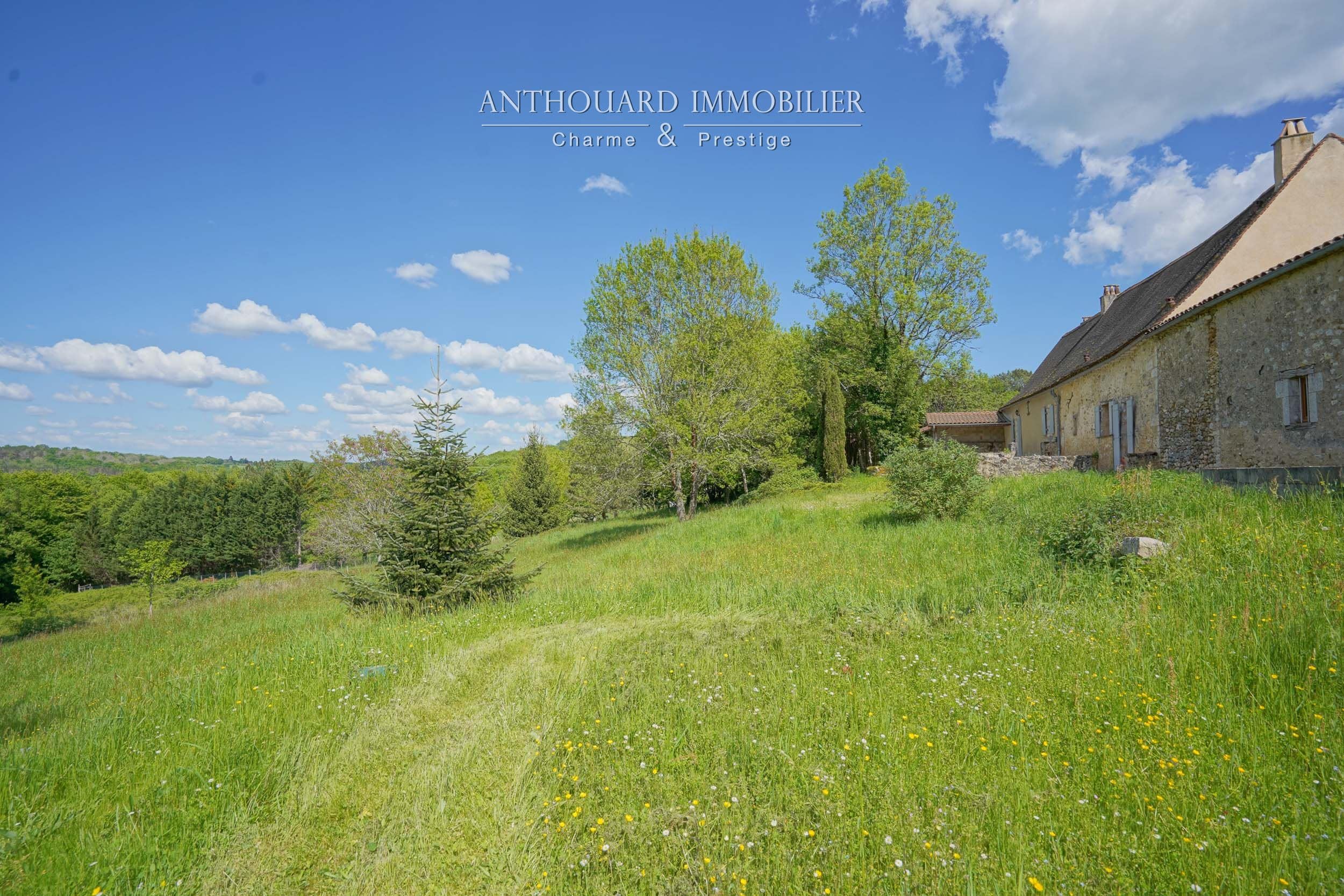 Land of 1.5 ha. Enclosed, hilly park with trees and orchard. Lovely views.