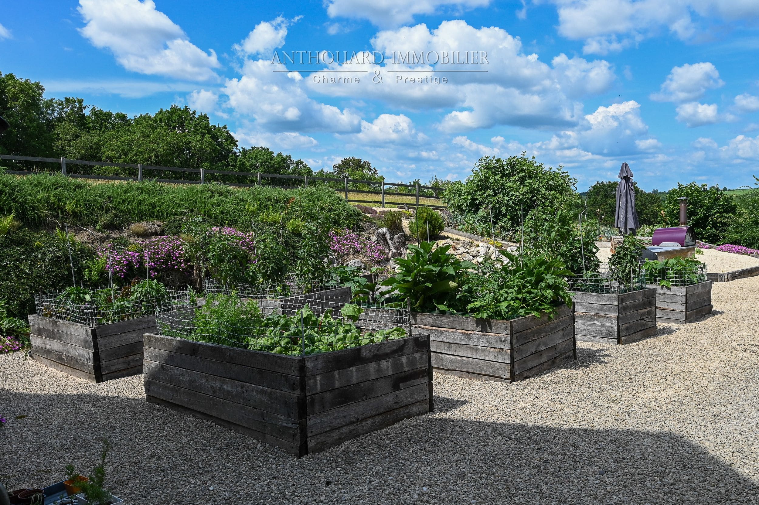 Fruit trees: plum, cherry, walnut and vegetable garden.