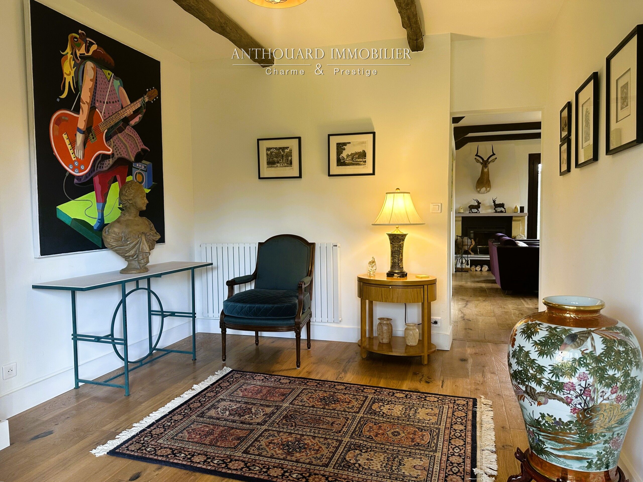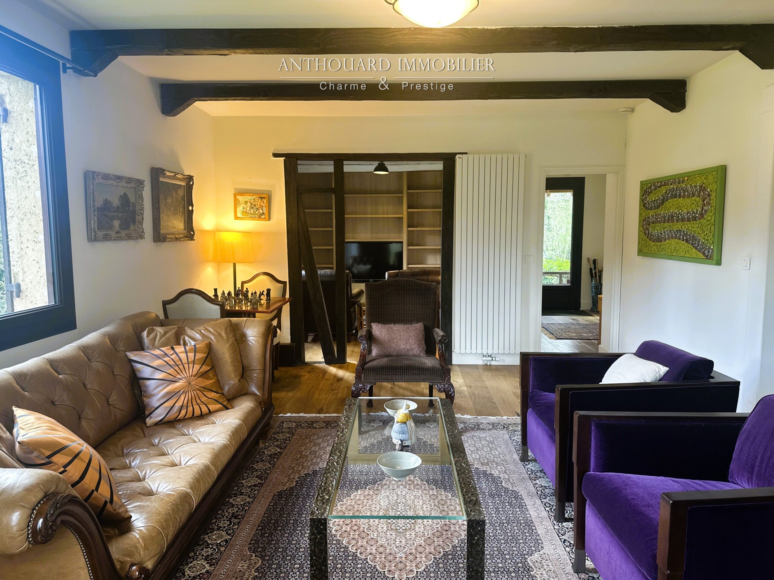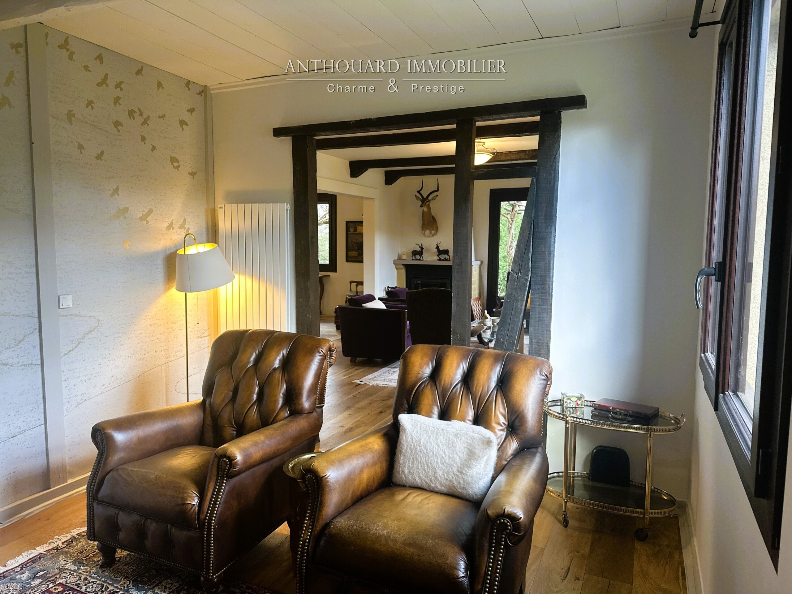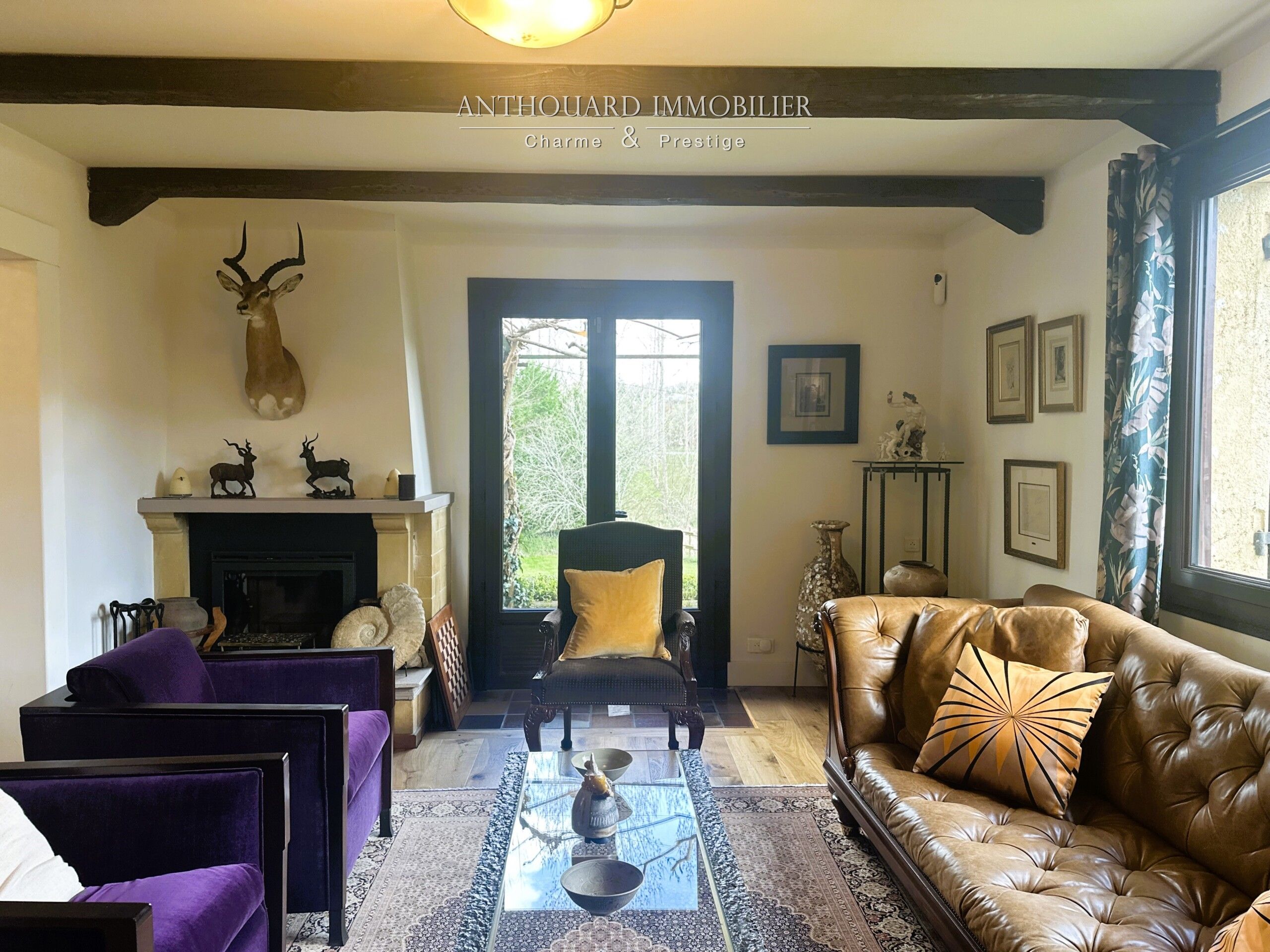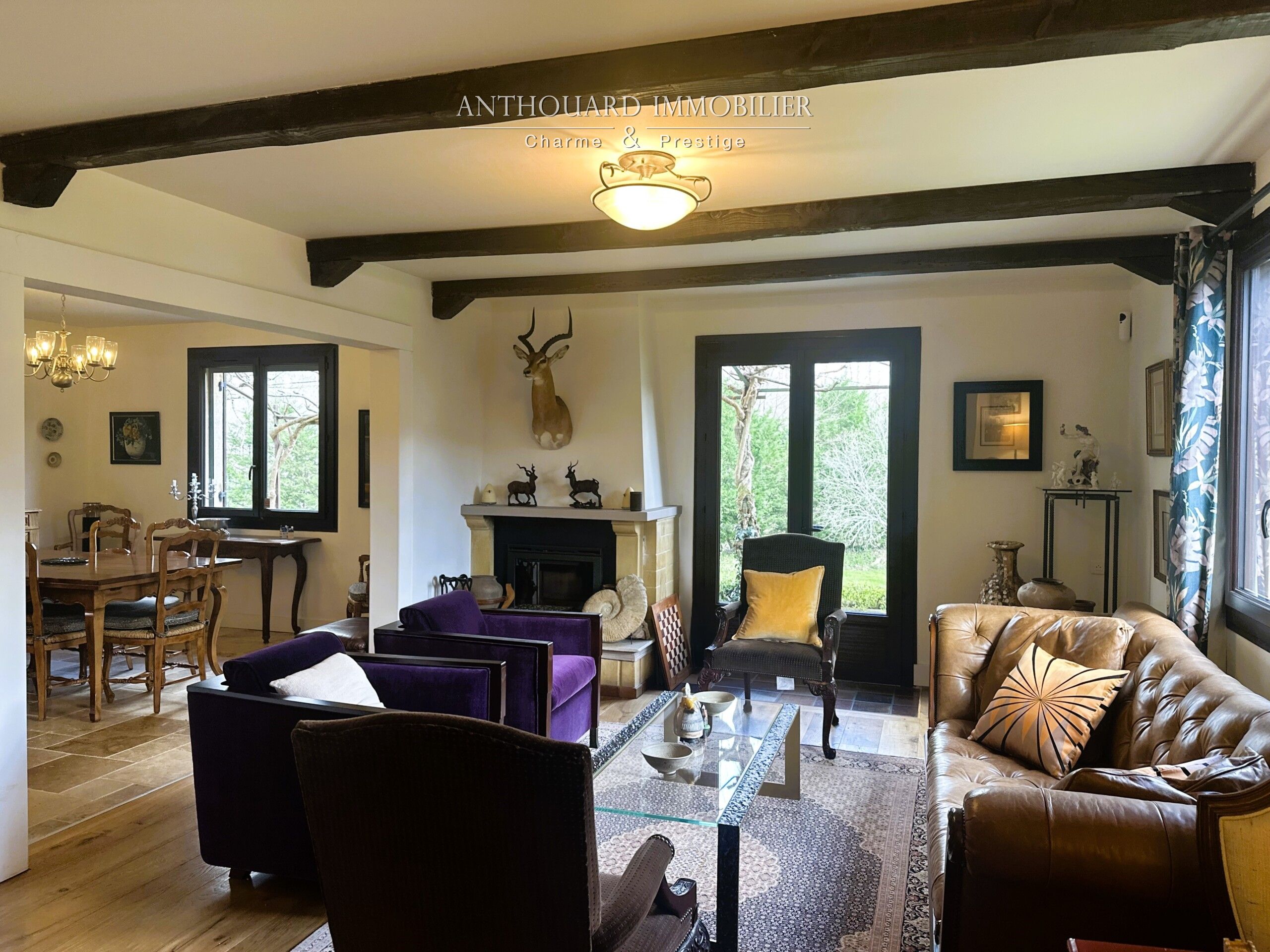 • Un salon lumineux, exposé sud, avec insert bois et accès terrasse.